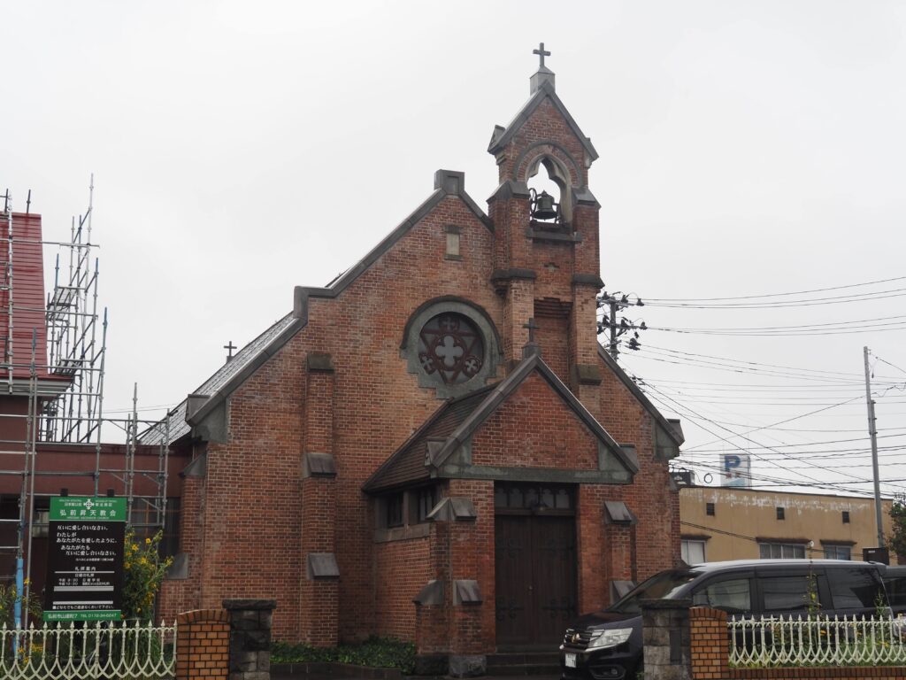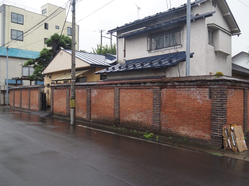 私設公会堂の跡地。残念ながら建物の古写真は見つからなかったが、煉瓦塀は今も残っている。