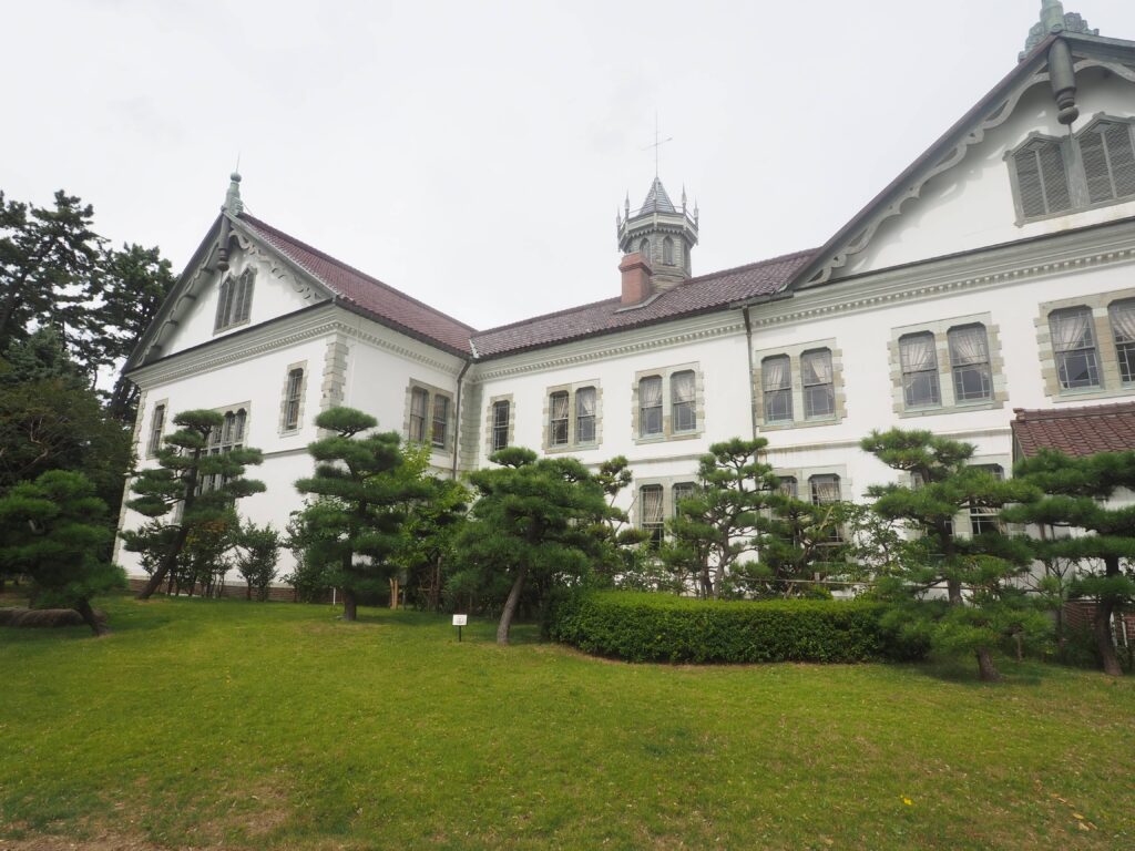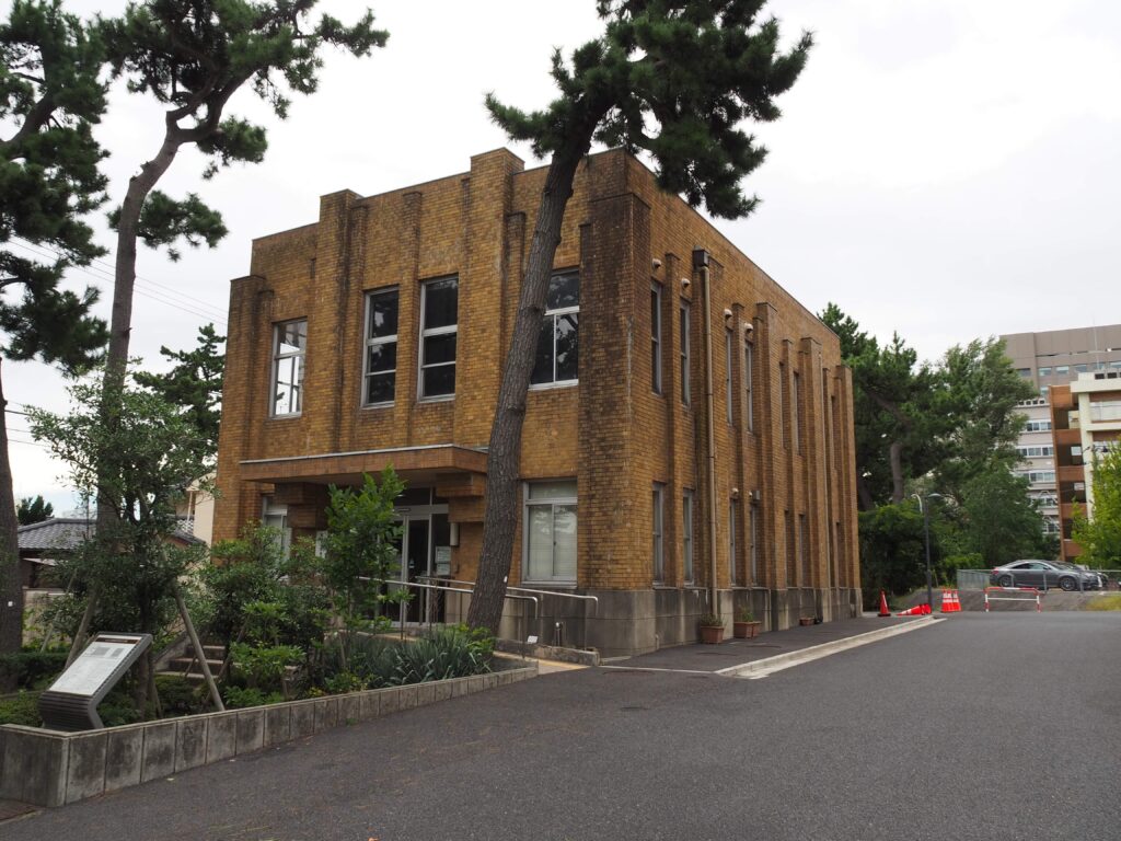 旧新潟師範学校記念館。当初用途は1階が陳列室、2階が集会所だった。この写真は2019年のものだが、今は窓枠が新しくなっている。公開施設。
