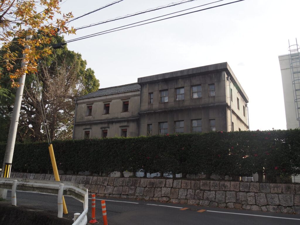 現岡山県立岡山朝日高校の敷地に残る旧制六高の遺構。1枚目の右側が東書庫。隣接する西書庫は後年のものである。切妻屋根の桟瓦葺で外壁はモルタル。