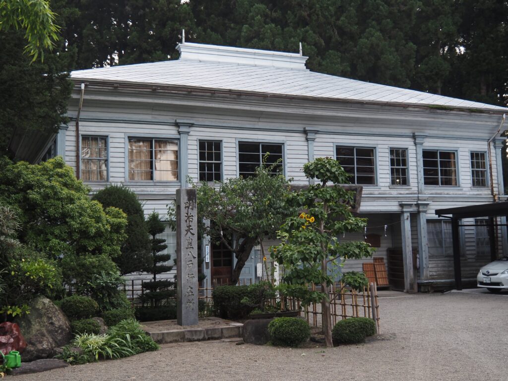 現在は櫛引八幡宮の境内に移築され、明治記念館として公開されている。 明治天皇の行在所としても使われた当時最新の洋館で、下見板張り、色ガラス、オーダー装飾や軒蛇腹など見所は多い。 弘前の鏡ヶ丘記念館が県内最古のを謳っている … 続きを読む