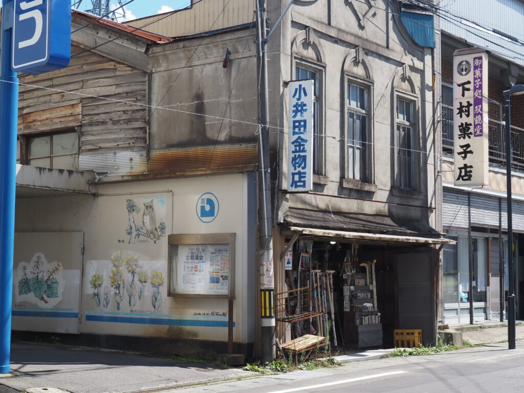 典型的な看板建築の作例。なぜか中心をやや外した窓の配置が可愛くて素敵である。