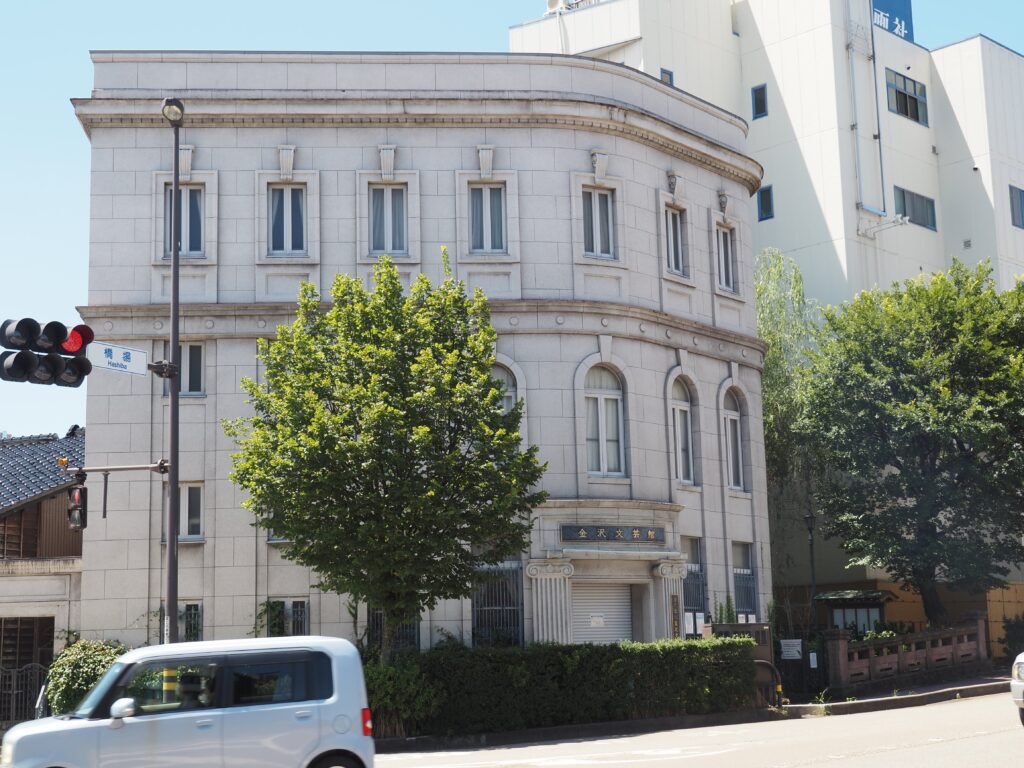 現在は金沢文芸館として公開施設。元は銀行建築であり、高岡銀行、加州相互銀行、石川銀行として行名を変えながら使われてきた。(文化遺産としては「旧石川銀行橋場支店」)