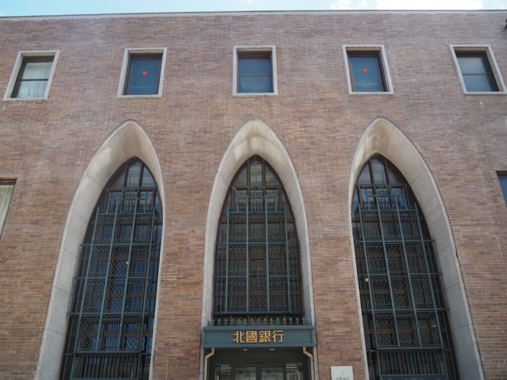 村野藤吾の作。金沢駅通りのアイストップになっているため大変目立つ位置にある。表現主義的なパラボラアーチが特徴。現在は北國銀行武蔵ヶ辻支店として使われている。