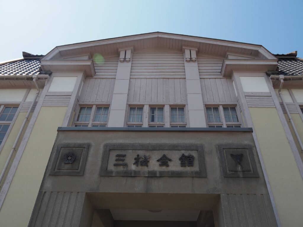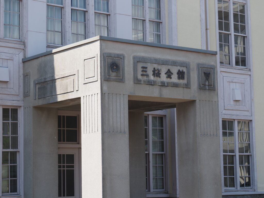 垂直性を強調し、縦長のガラス戸が整然と並ぶ。明治と昭和の合間にある、華やかさとモダンの両方の色を持った軽やかな木造校舎は大正期特有の美しさがある。