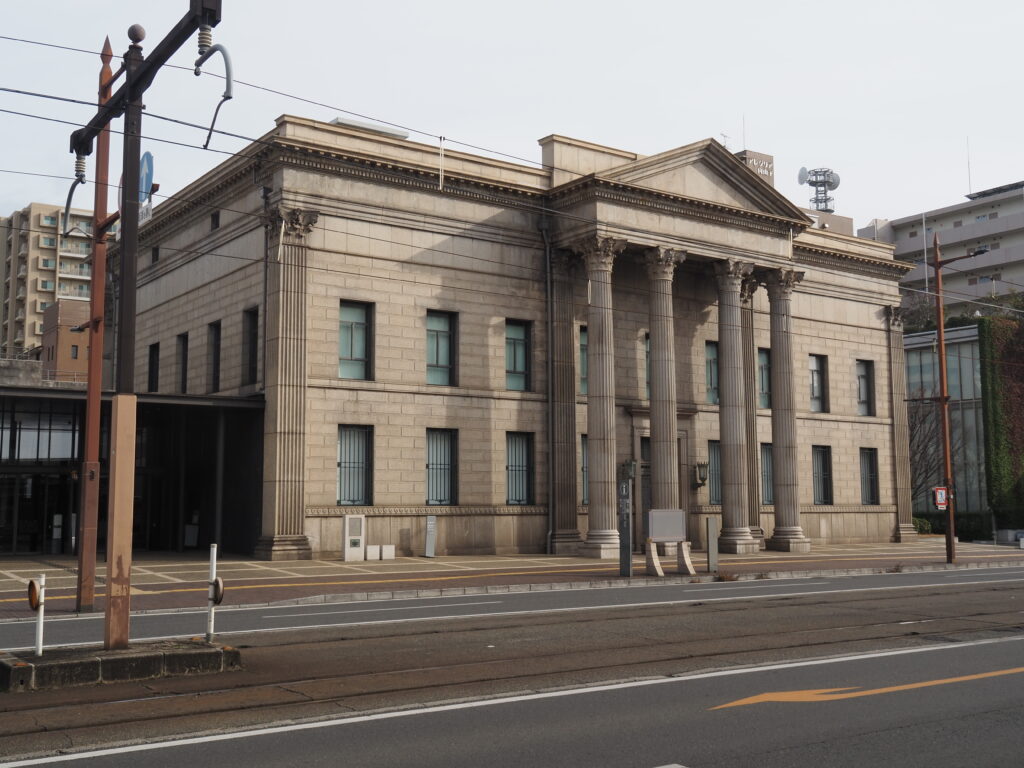 長野宇平治は日銀技師を辞め独立した後も日銀の地方支店を多く手がけた。岡山支店もその内の1つである。それにしても奥行の狭さが本当に気になる。後々になって追加するように言われてヤケクソで追加したような不自然っぷりだ。