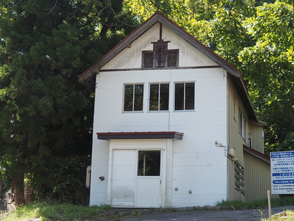 大湊の軍港を一望できる水源地公園の近くにある洋風住宅。竣工年不明だが、明治末期に大湊が軍港化したこと、周囲の官舎が大正初期なことからこの建物も大正初期と推定。