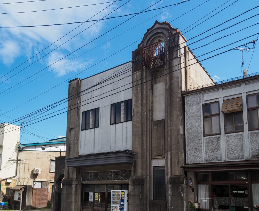 現存する県内最古の鉄筋コンクリート造。大正12年(1921)の三戸大火の反省を活かし、耐火建築としてコンクリにしている。ドイツ表現主義的な意匠が特徴的。
