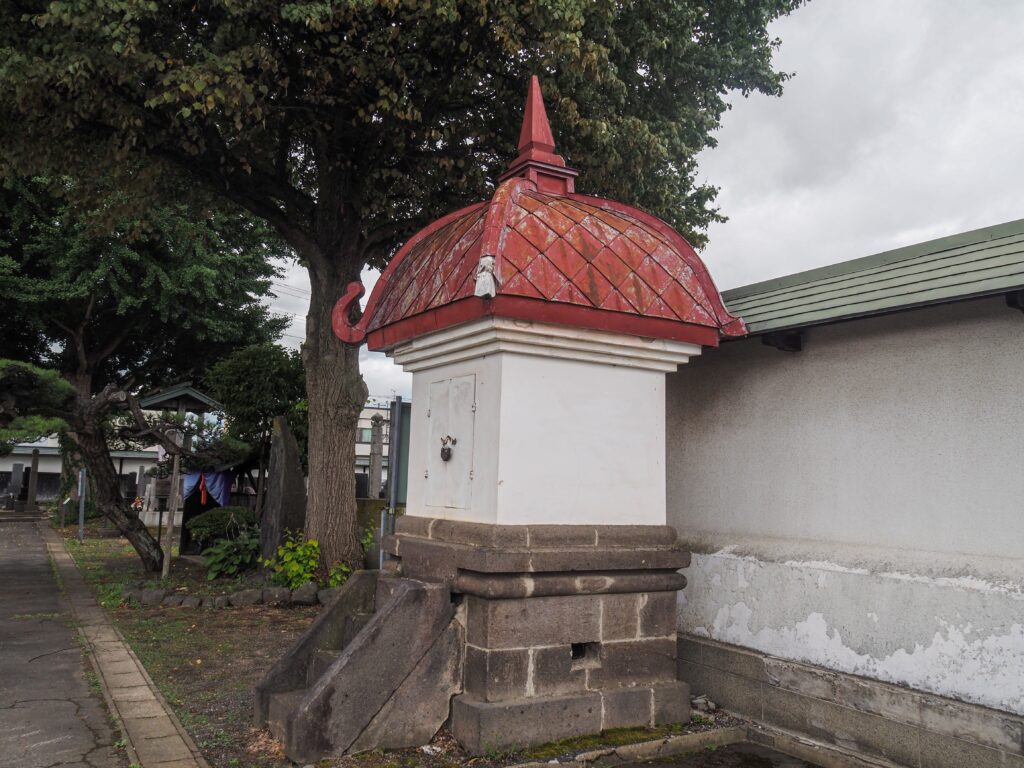 用途が全く分からないが墓所の前にある洋風屋根の何か。