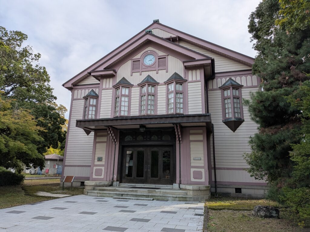 旧新潟師範学校記念館。当初用途は1階が陳列室、2階が集会所だった。この写真は2019年のものだが、今は窓枠が新しくなっている。公開施設。